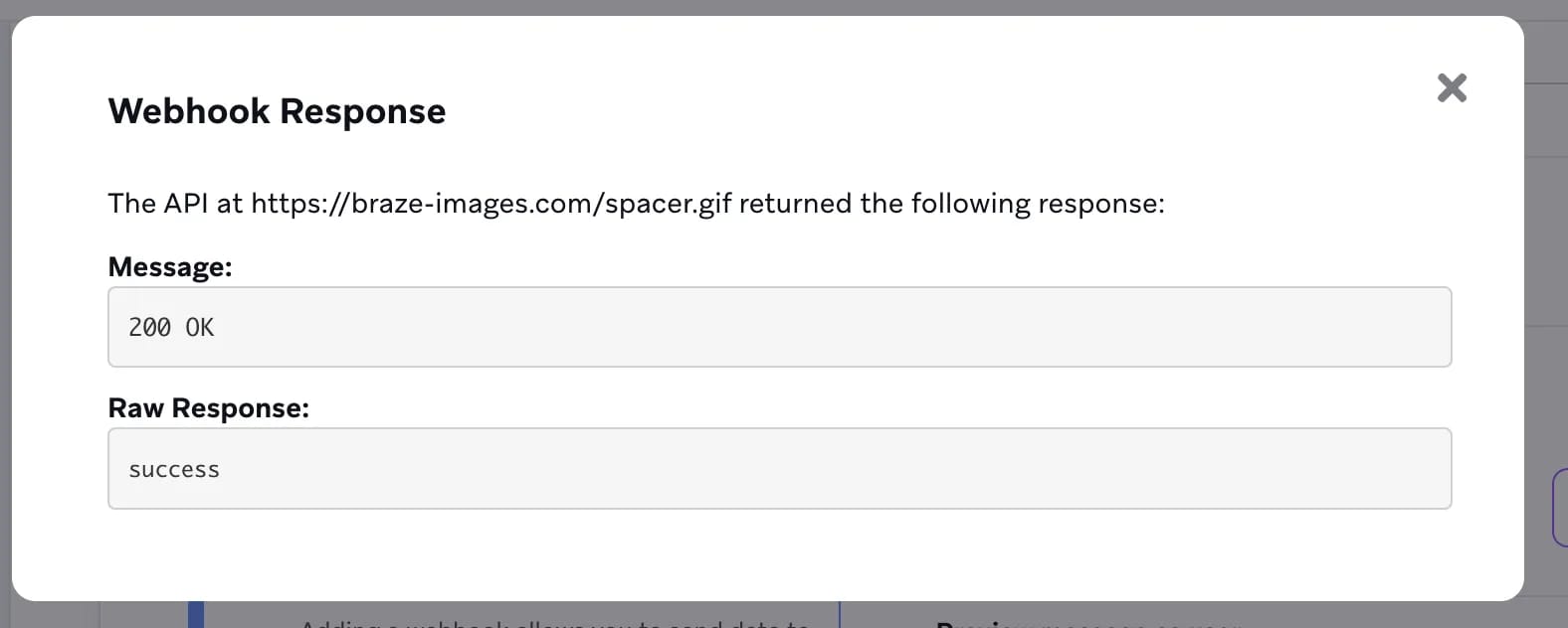 This Braze-owned URL safely returns a 200 OK response - perfect for testing.